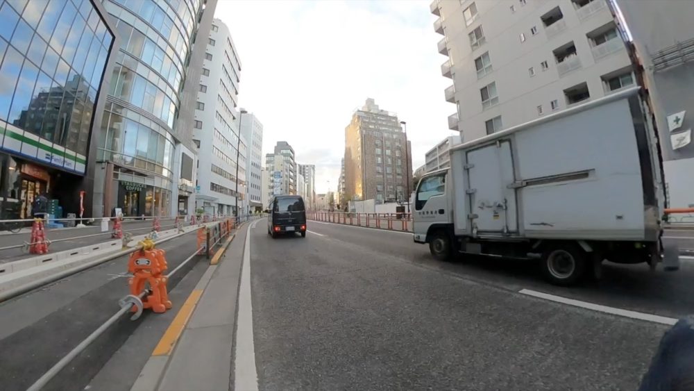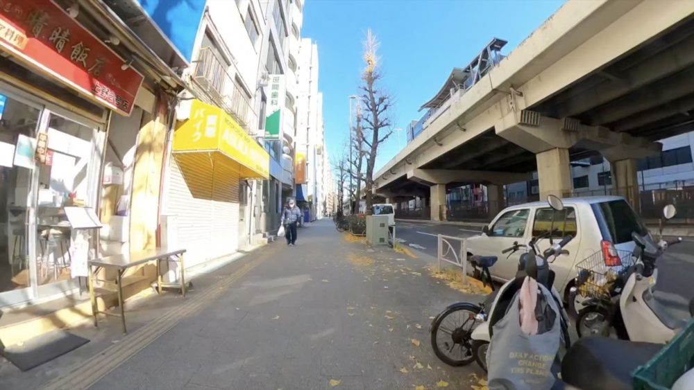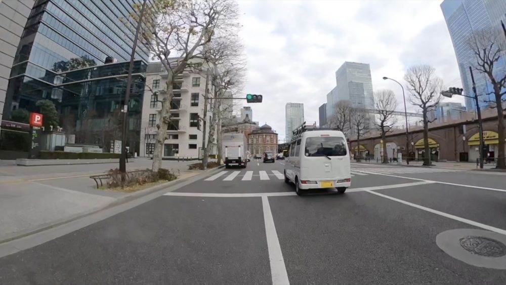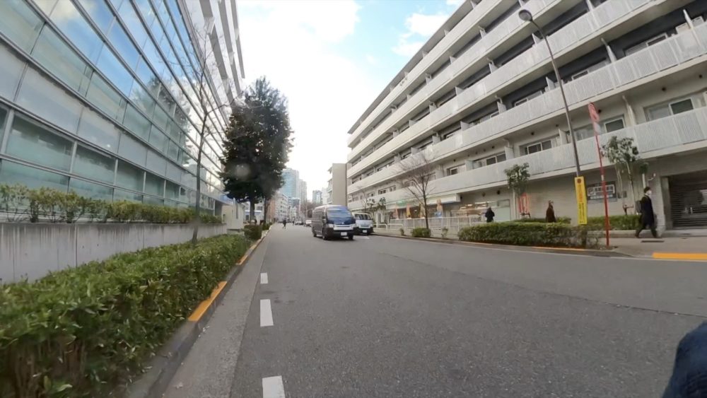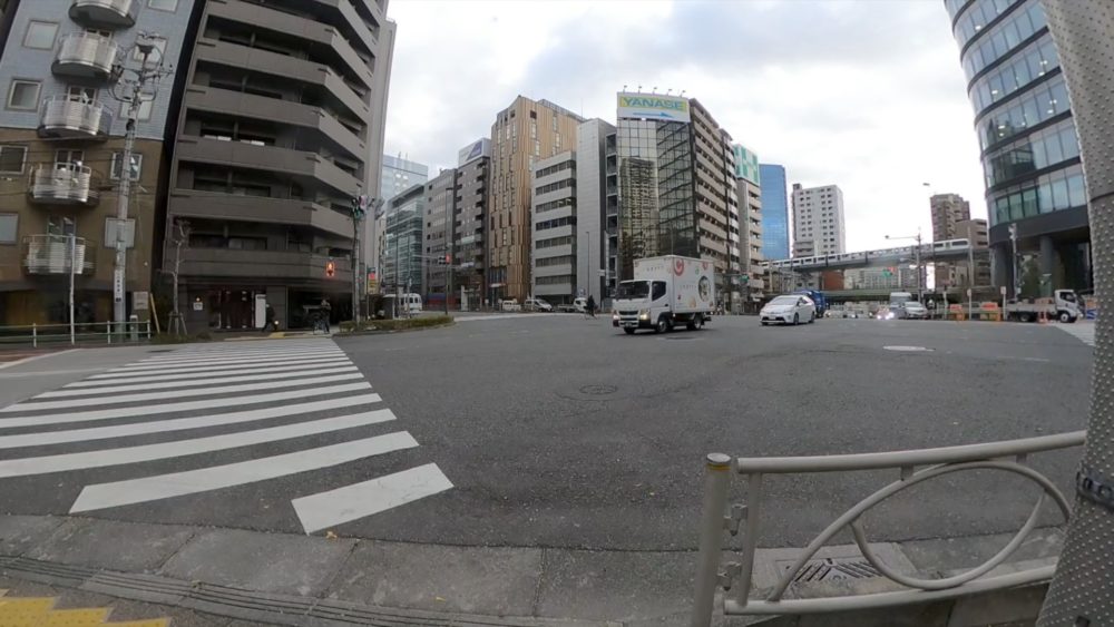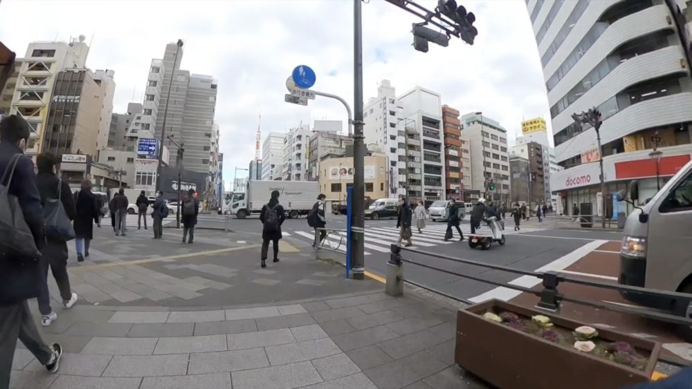 第一京浜を一気に北上し、大門の交差点で右折し浜松町駅を撮影。芝4丁目の交差点では東海道新幹線が走る様子などを見ることができます。