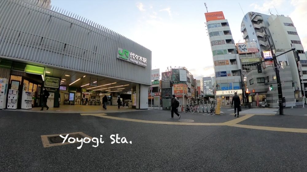 甲州街道の西新宿一丁目の信号をそのまま南側に横断しまっすぐに進むと、ほどなくして代々木駅が出てきます。ドコモタワーを至近距離で見ることができます。