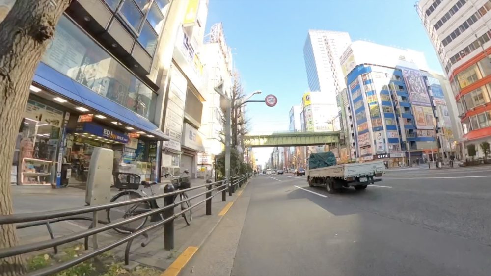 神田駅で中山道へでて万世橋を渡ると秋葉原の電気街が現れます。今回は電気街南口を撮影しました。ガード下の道を歩いたせいかそれほど進んでいないことに気づきます。