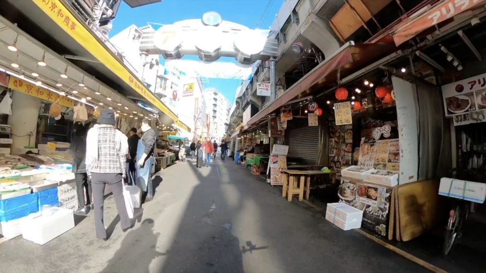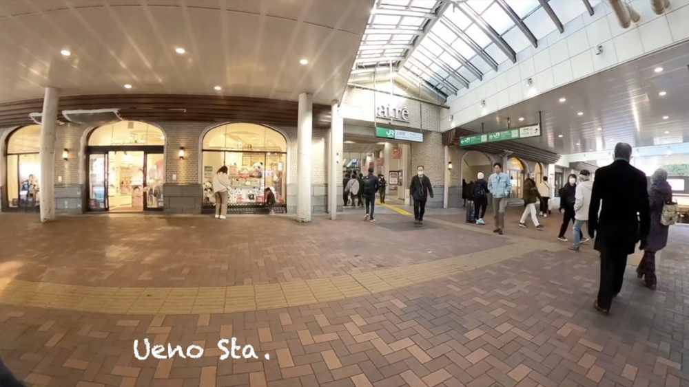 そのまま高架下西側の道路を北上するとアメ横になります。賑わう店先を自転車を押しながら通過すると視線の先には上野駅が現れます。今回は不忍口を撮影。新橋駅から上野駅まではほぼ線路の高架下沿いに北上してきたことになります。