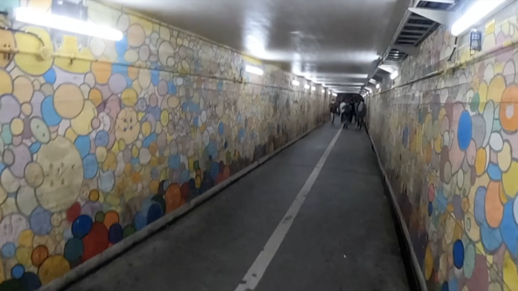 アートを感じさせてくれる線路下の地下道