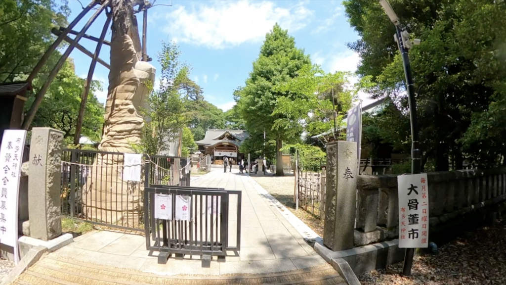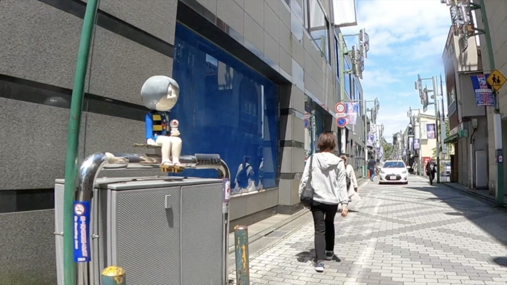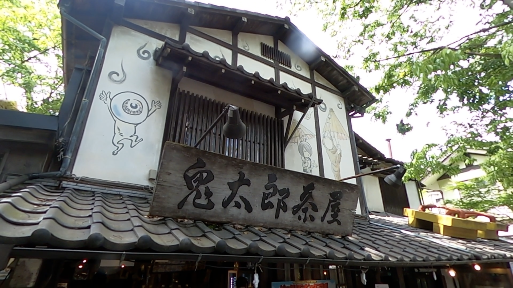 天神通りでは、同市に逝去するまで住んでいた水木しげるの鬼太郎のキャラクターたちが出迎えてくれます。元はこの先にある布多天神社の参道です。また布多天神社はつげ義春の「カメラを売る」内では、寂しいときに月に一度の天神様の縁日に訪れ、貧しい仲間たちと会うことで心が休まる場所として描かれています。子供の手を引いて天神社を後にするラストシーンは「海辺の叙景」に匹敵する美しさです。