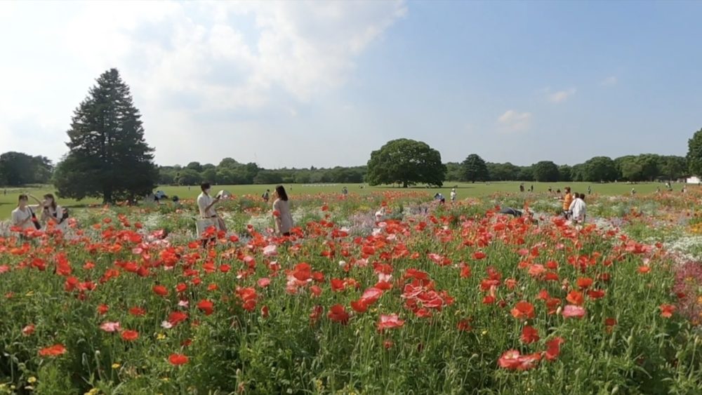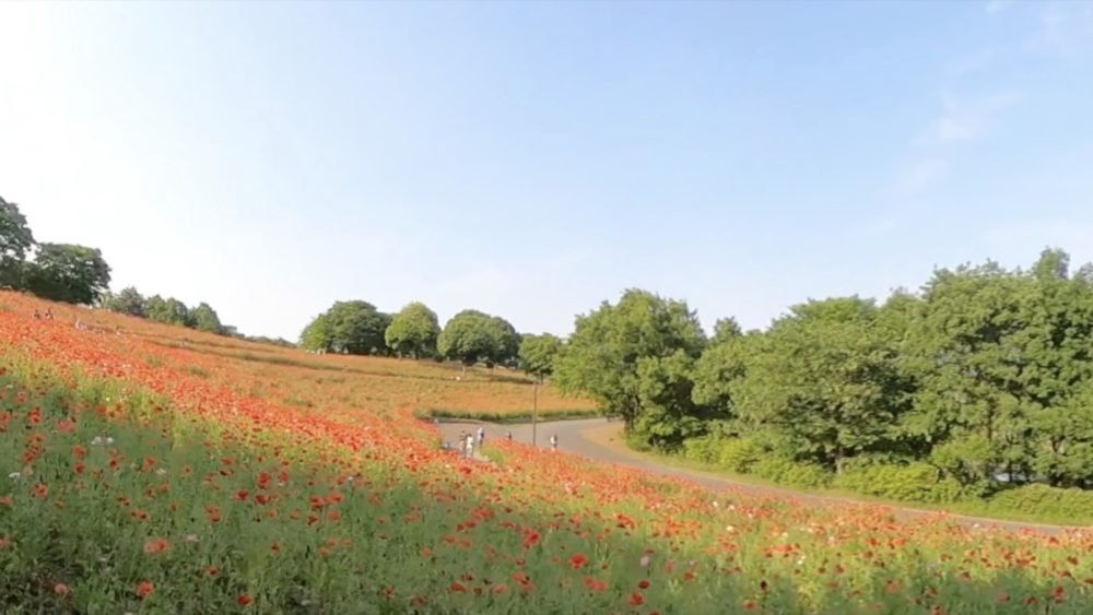 撮影は5月中旬ごろ。この時はポピーが一面に咲き誇っていました。季節によって咲く花も変化しますので、一年中来園者を楽しませてくれます。